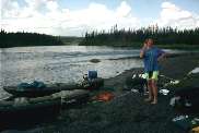 Dort setzten wir mit der Fähre über den Pelly River, um dann noch ca. 130 auf der North Canol Road (eigentlich ein schlimmer Schotterweg) den Sheldon Lake als Ausgangspunkt zu erreichen und die Vorbereitungen für den Start am Folgetag zu treffen.
